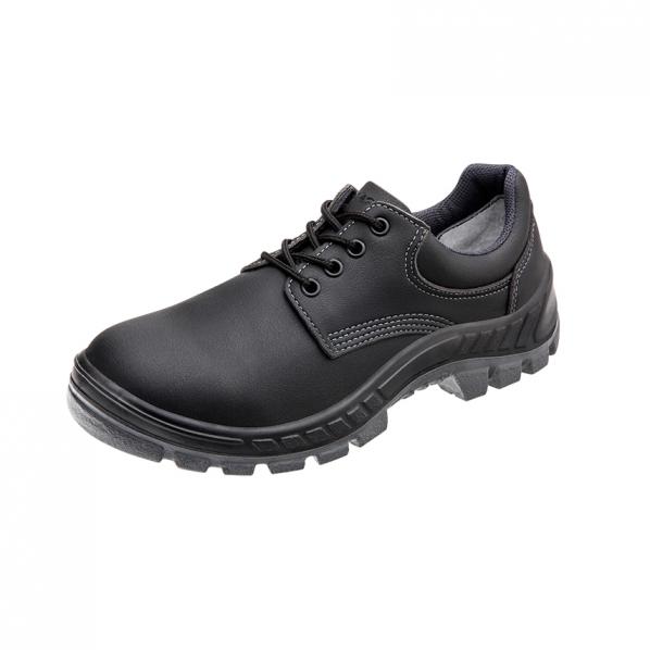Sapato de segurança confeccionado em microfibra (tecido de fibra curta de alta performance, mais leve, resistente à água, transpirável, lavável, antibacteriano, resistente a produtos químicos, não propaga chamas, permite o realce de cores e é ecológica), biqueira de polipropileno, colarinho soft acolchoado com forração transpirável, fechamento em cadarço, palmilha de montagem em poliéster resinado, solado isolante em PU bidensidade com sistema de absorção de impacto, injetado diretamente ao cabedal.