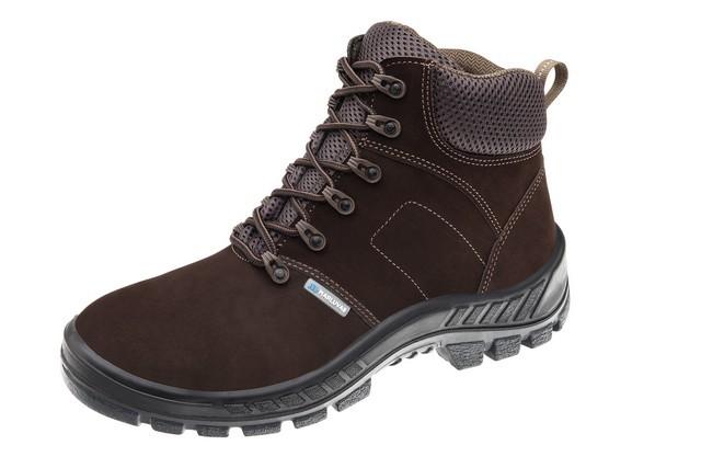 Botina ocupacional com biqueira de plástico, colarinho acolchoado, confeccionada em couro, fechamento em cadarço, forração interna e solado bidensidade.