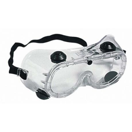 Óculos de segurança, modelo ampla-visão, constituídos de armação confeccionada em uma única peça de PVC flexível transparente, com sistema de ventilação direta composta de cerca de 274 (duzentos e setenta e quatro) orifícios quadrados localizados na parte superior e cerca de 226 (duzentos e vinte e seis) localizados na parte inferior da armação ou ventilação indireta, composta de duas válvulas localizadas na parte superior e duas válvulas localizadas na parte inferior da armação e lente de policarbonato incolor. O ajuste à face do usuário é feito por meio de um tirante elástico. Os óculos cobrem toda a região em torno dos olhos do usuário.
