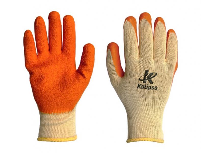 Luva de segurança tricotada em poliéster, com revestimento corrugado em látex natural na palma, face palmar dos dedos e pontas dos dedos, punho tricotado em poliéster e elástico, acabamento em overloque.